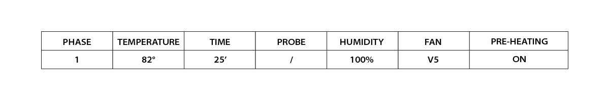 Lay down the fillets on a perforated pan, season with thyme and cook according to the chart.