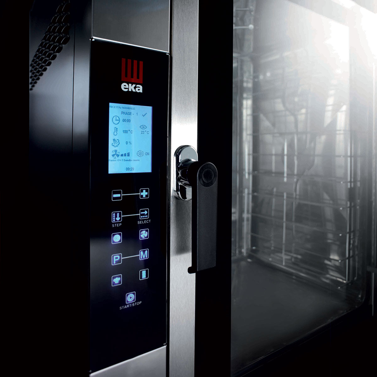 - Pre-setting for the automatic flushing of the cooking chamber with 4 programmes: rinsing, quick, medium and long wash